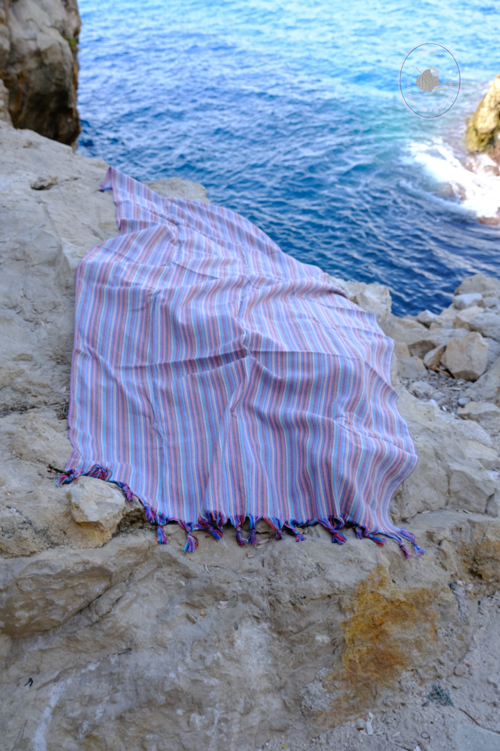 Mor Çok Renkli Çizgili Peştemal (pştm77)